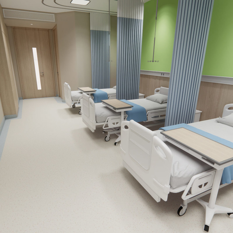 ✔️Keamanan & Kenyamanan: Tekstur anti selip dan sifat peredam bising meningkatkan pemulihan pasien, sementara dukungan yang empuk mengurangi kelelahan staf.