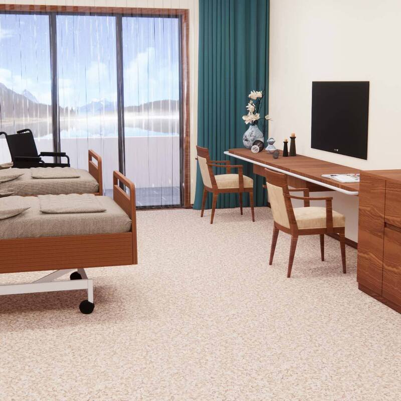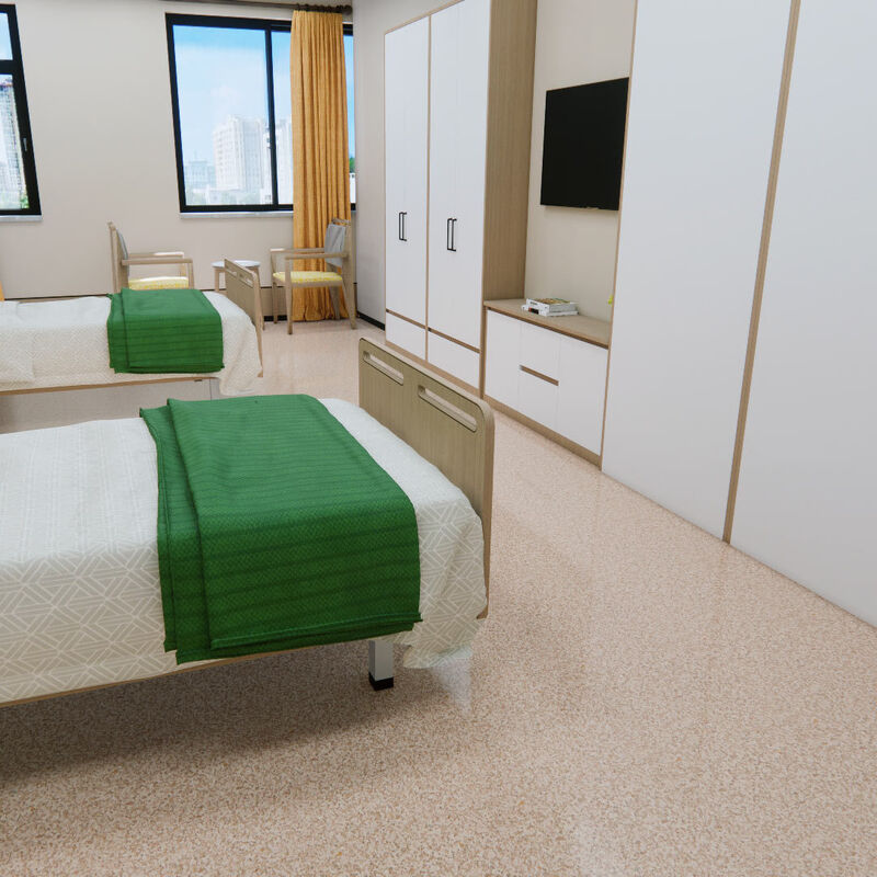 ✔️Keamanan & Kenyamanan: Tekstur yang tahan geser dan sifat pengurangan kebisingan meningkatkan pemulihan pasien, sementara dukungan yang dibungkus mengurangi kelelahan staf.