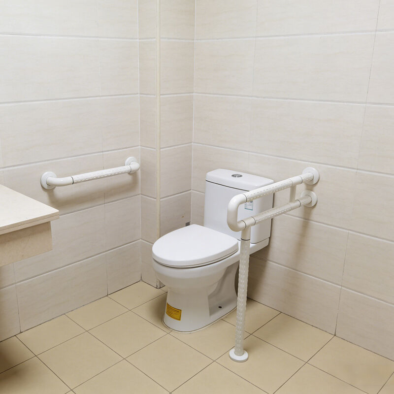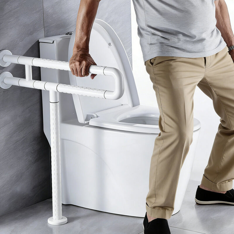 Seri pegangan toilet berbentuk U yang dipasang di lantai dengan kaki