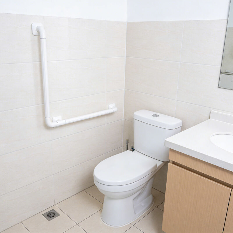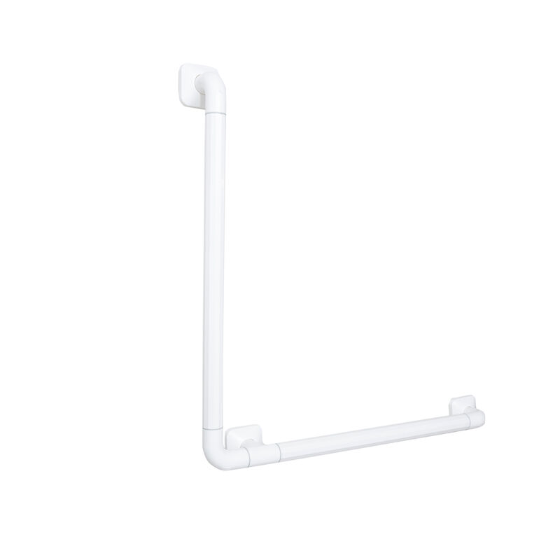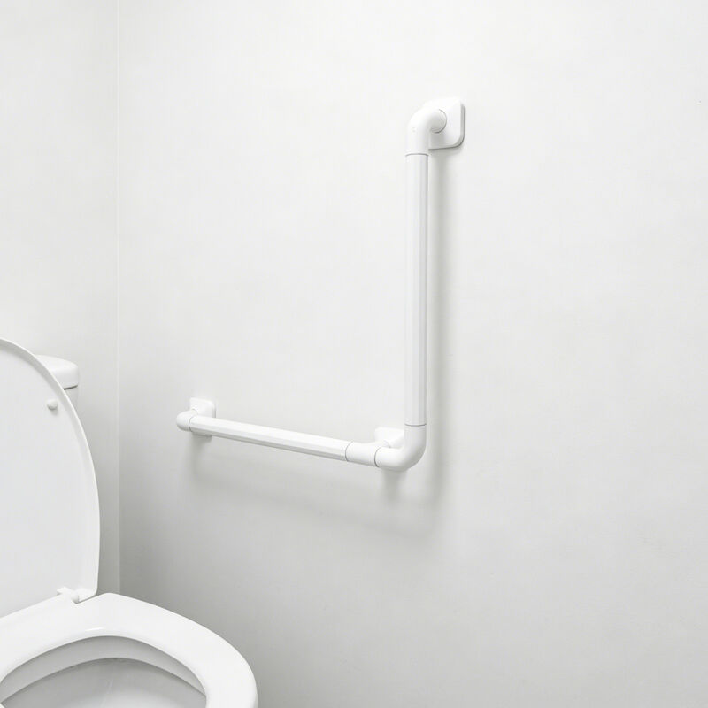 L-Shaped White Nylon Wall Mounted Grab Bar - Non-slip, kapasitas beban 150kg, waterproof.